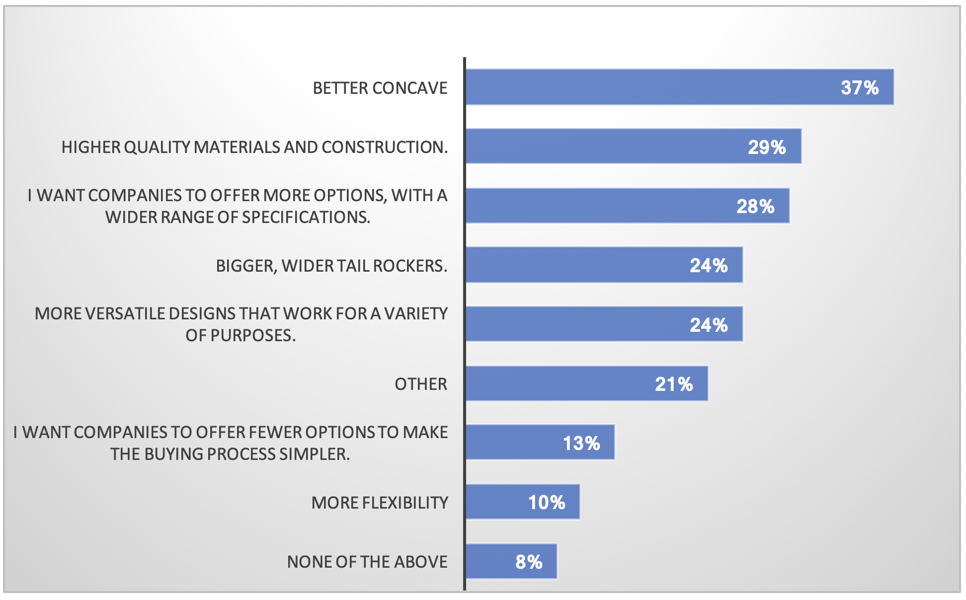 QUESTION: If you could tell surfskate companies anything about how to design your ideal surfskate deck, what would it be? (Open-ended.)
